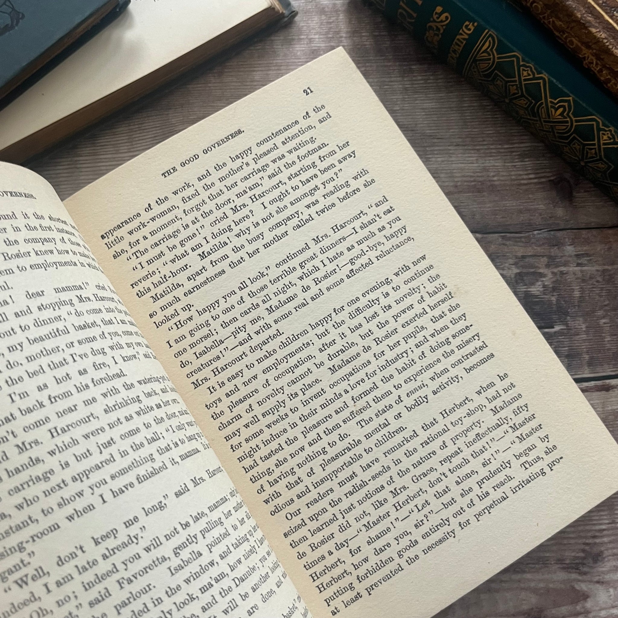 This stunning edition of The Good Governess by Maria Edgeworth features stunning art nouveau boards designed by Ethel Larcombe. The book was published by Blackie and Son. The book is undated but there is a written inscription on the front endpaper dated 1914.