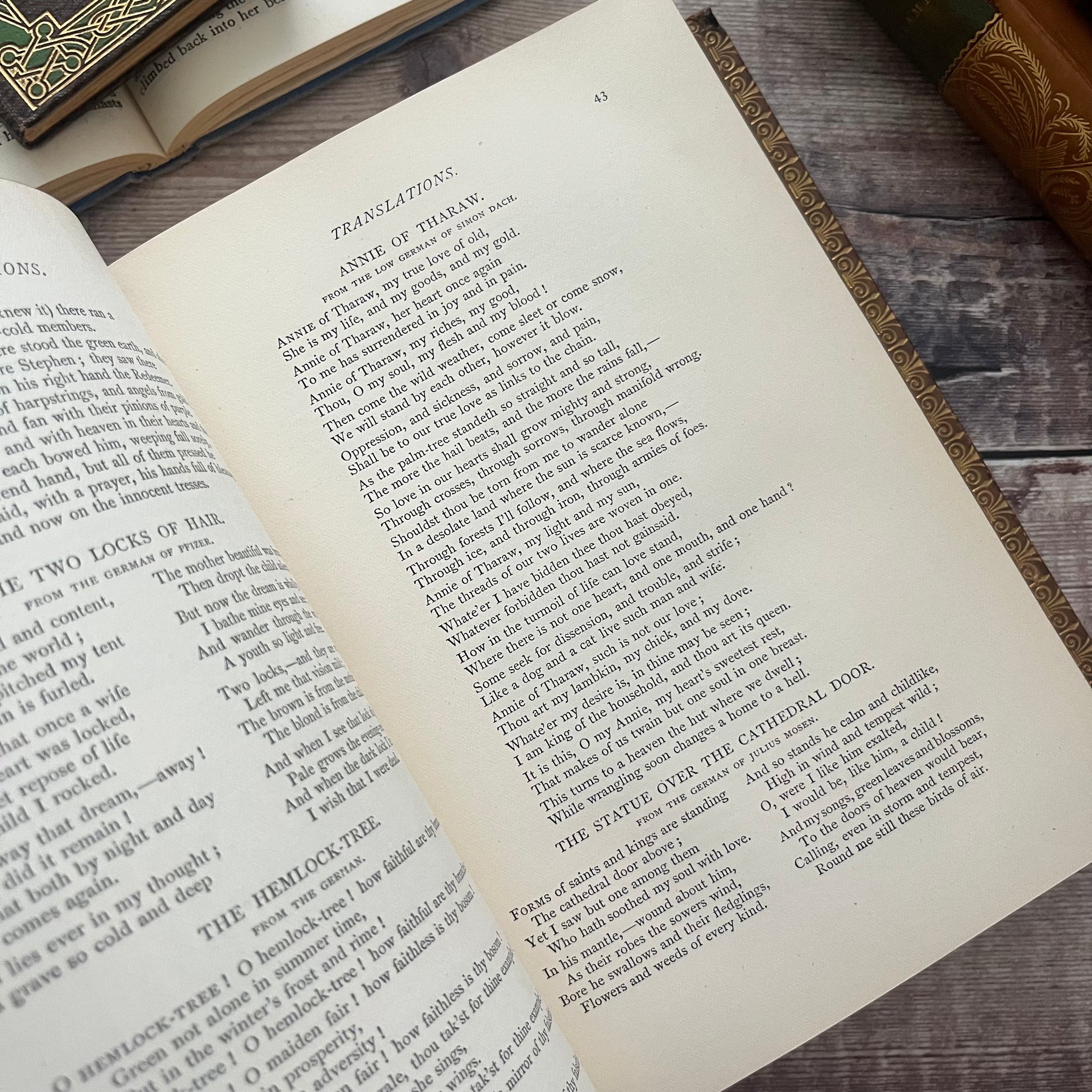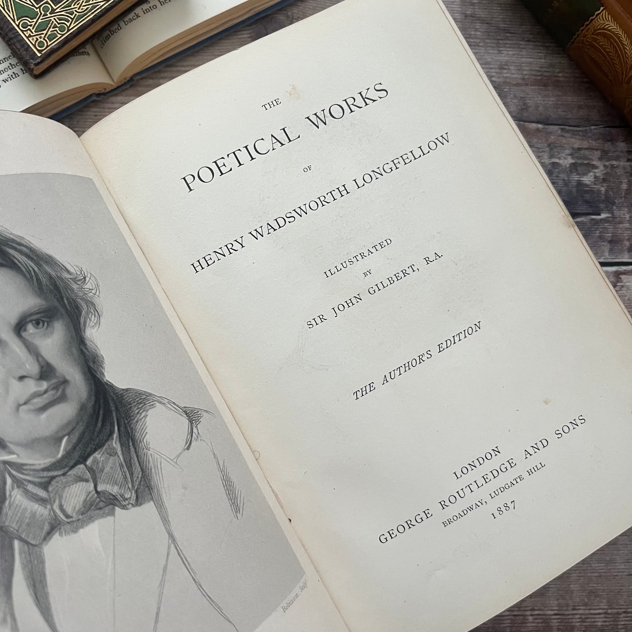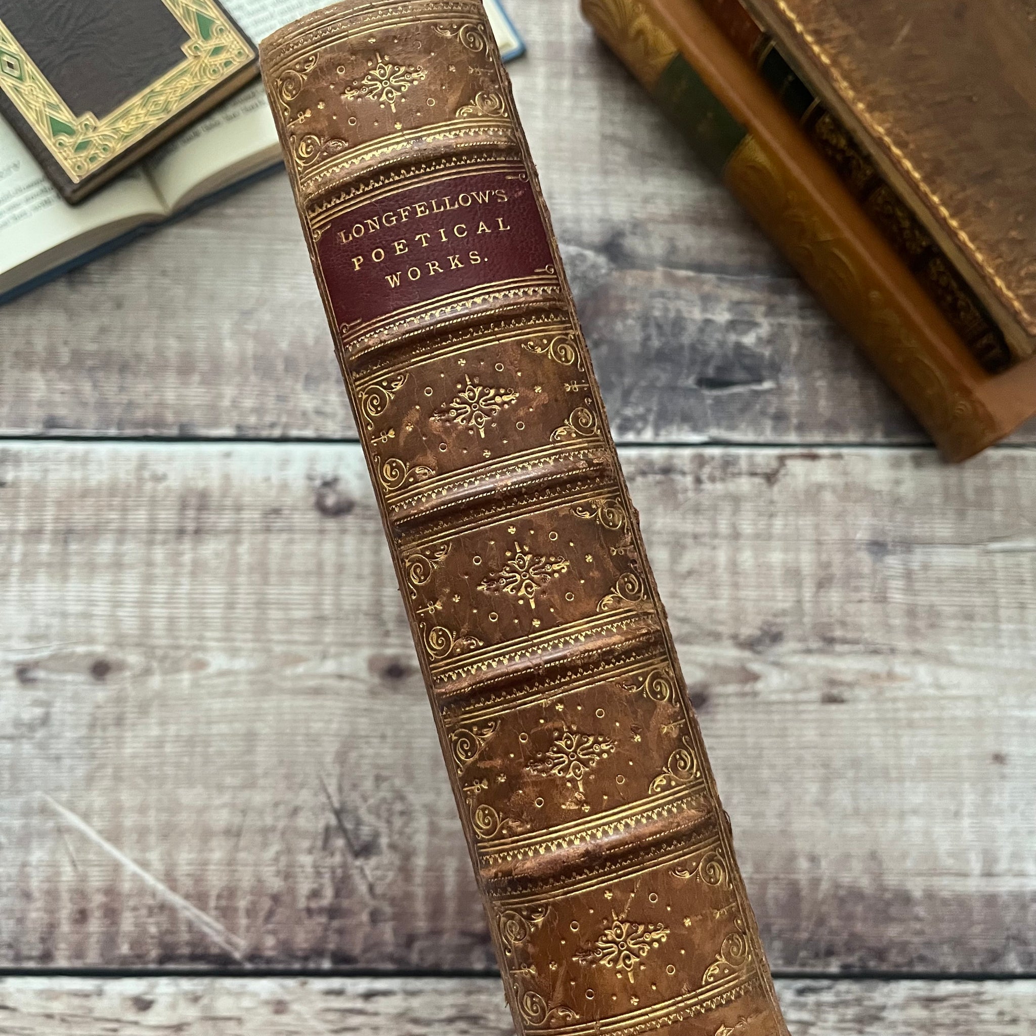 This lovely edition of The Poetical Works of Longfellow was published by George Routledge in 1887. It's bound in full tree calf leather, with five raised bands and gilt tooling to the spine. All edges are gilt.