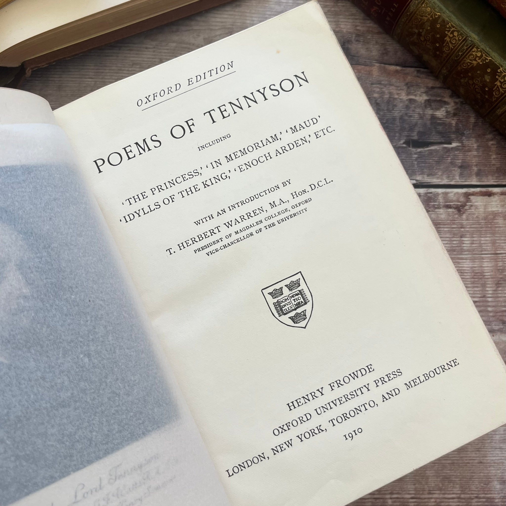 This beautiful edition of The Poetical Works of Alfred Lord Tennyson was published by Henry Frowde in 1910. So the book is from the end of the Edwardian era.