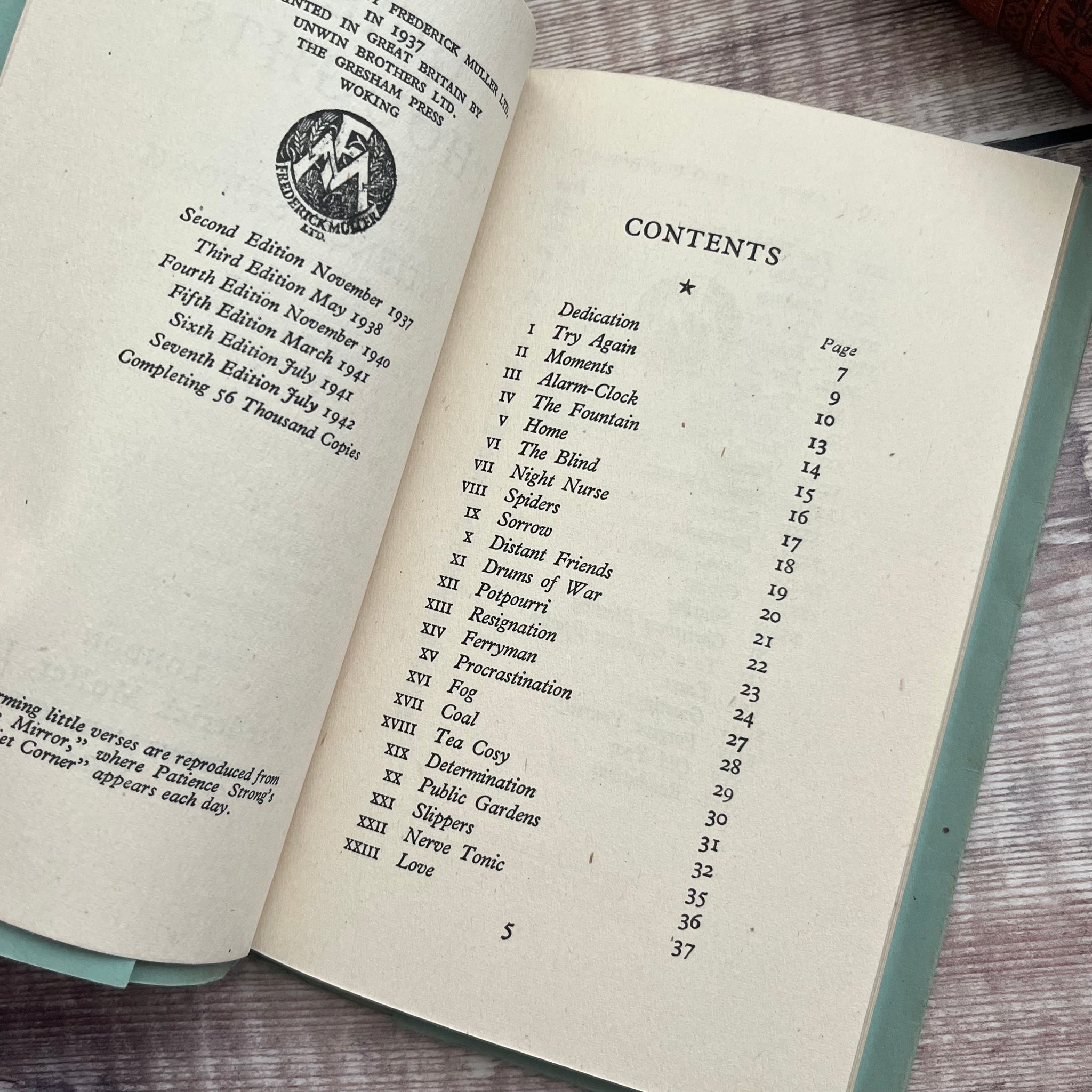 This lovely vintage softcover edition of Quiet Thoughts by Patience Strong was published by Frederick Muller in 1942. It is the seventh edition.