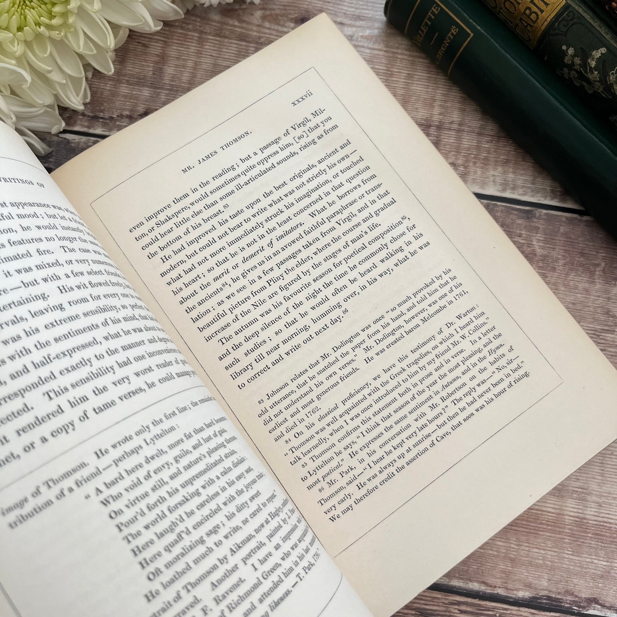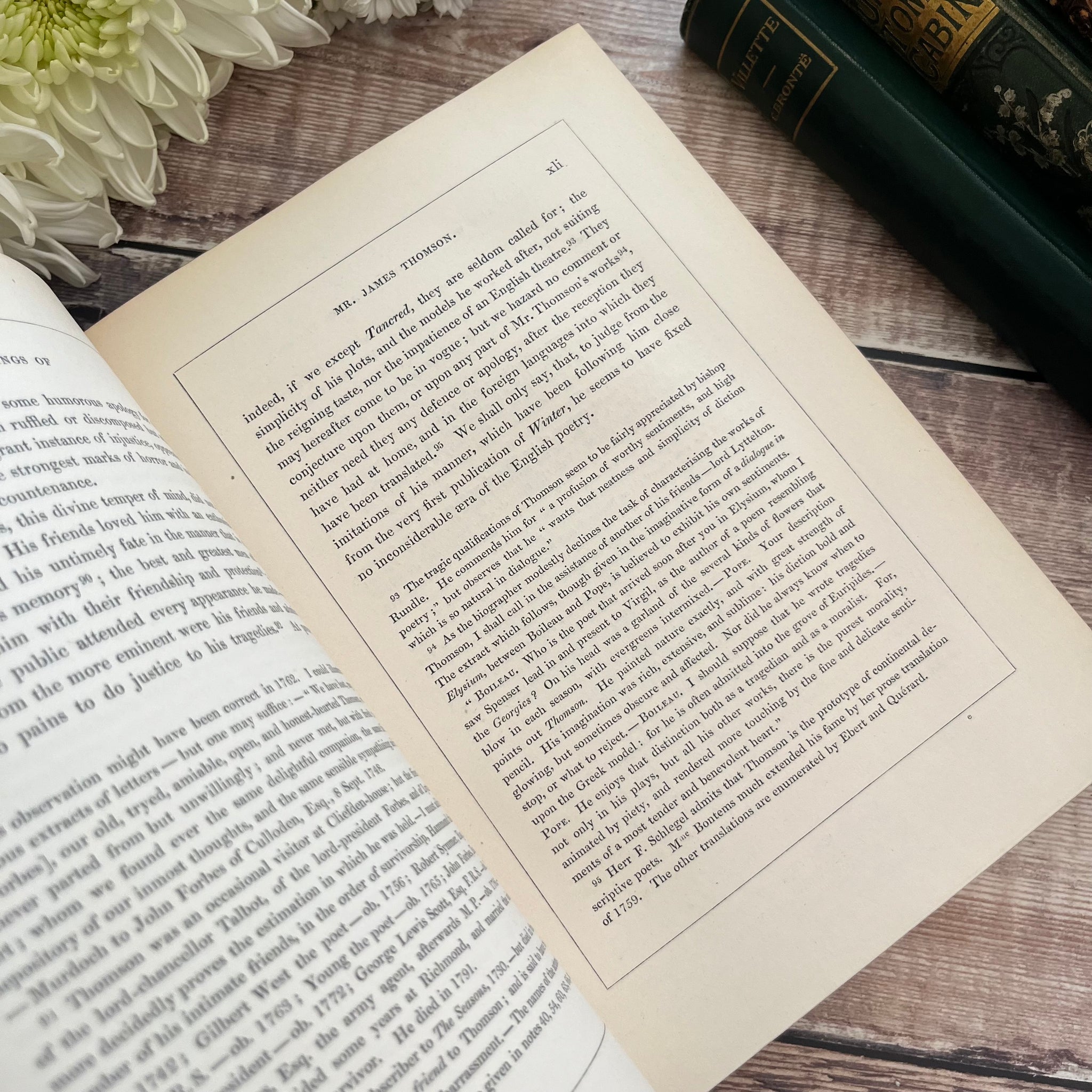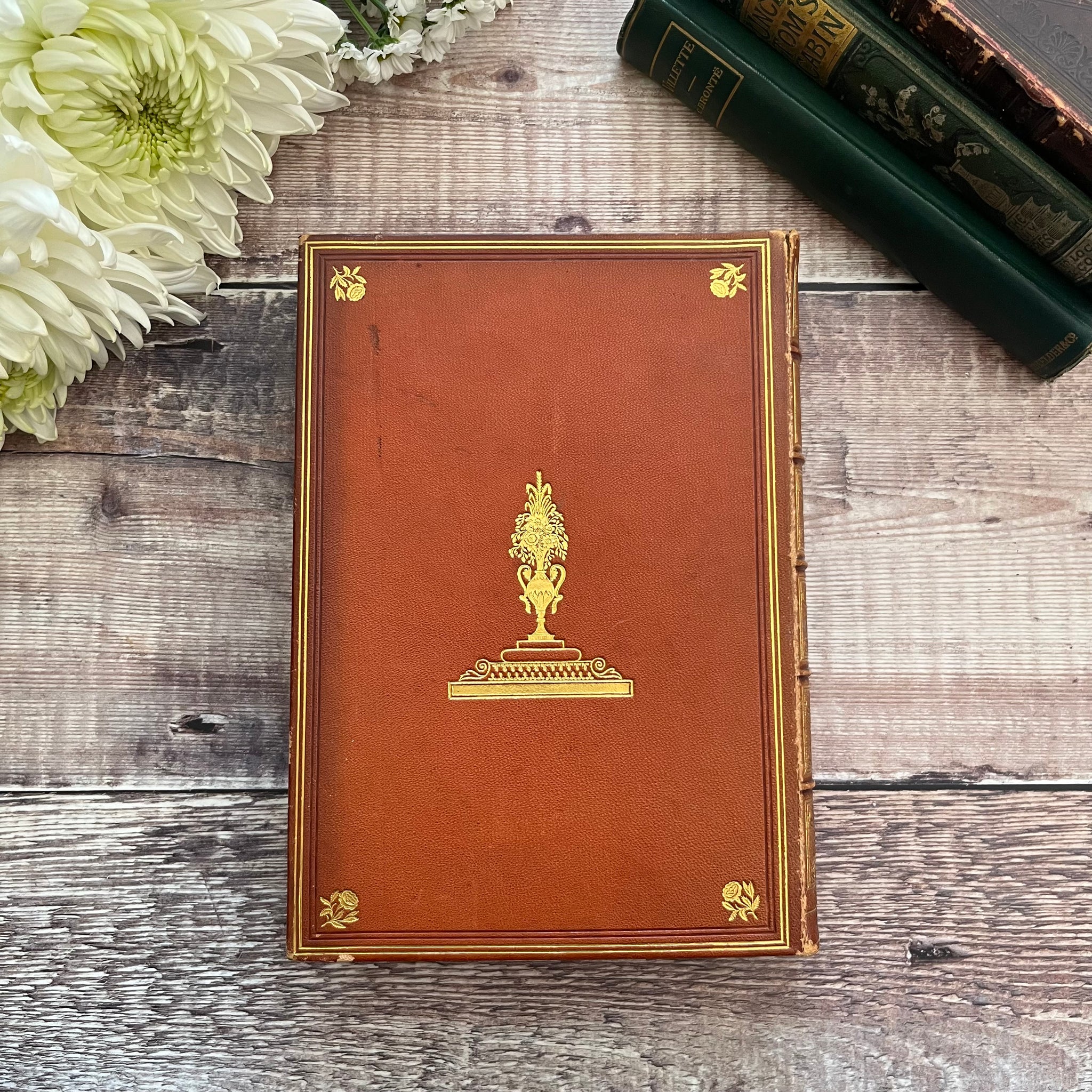 This beautiful antique edition of The Seasons by James Thomson was published by Longman, Brown, Green, and Longmans in 1842. It's bound in full Morocco leather with gold gilt tooling to the boards and spine. The text block edges are gold gilt and the spine features five raised bands.
