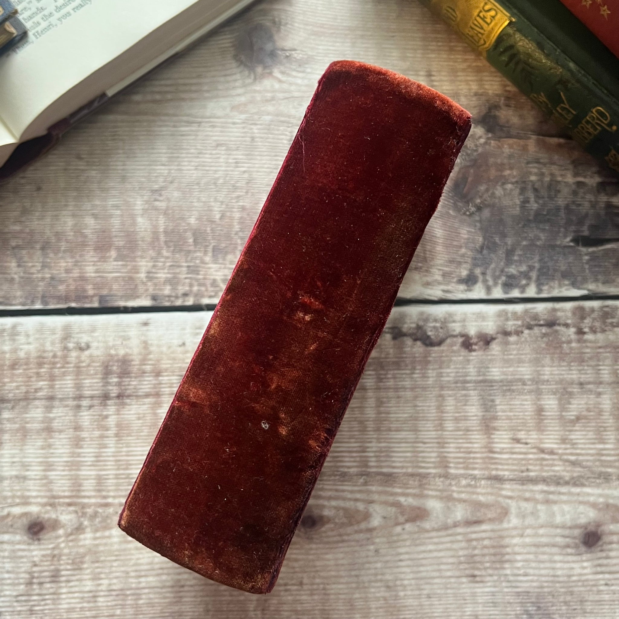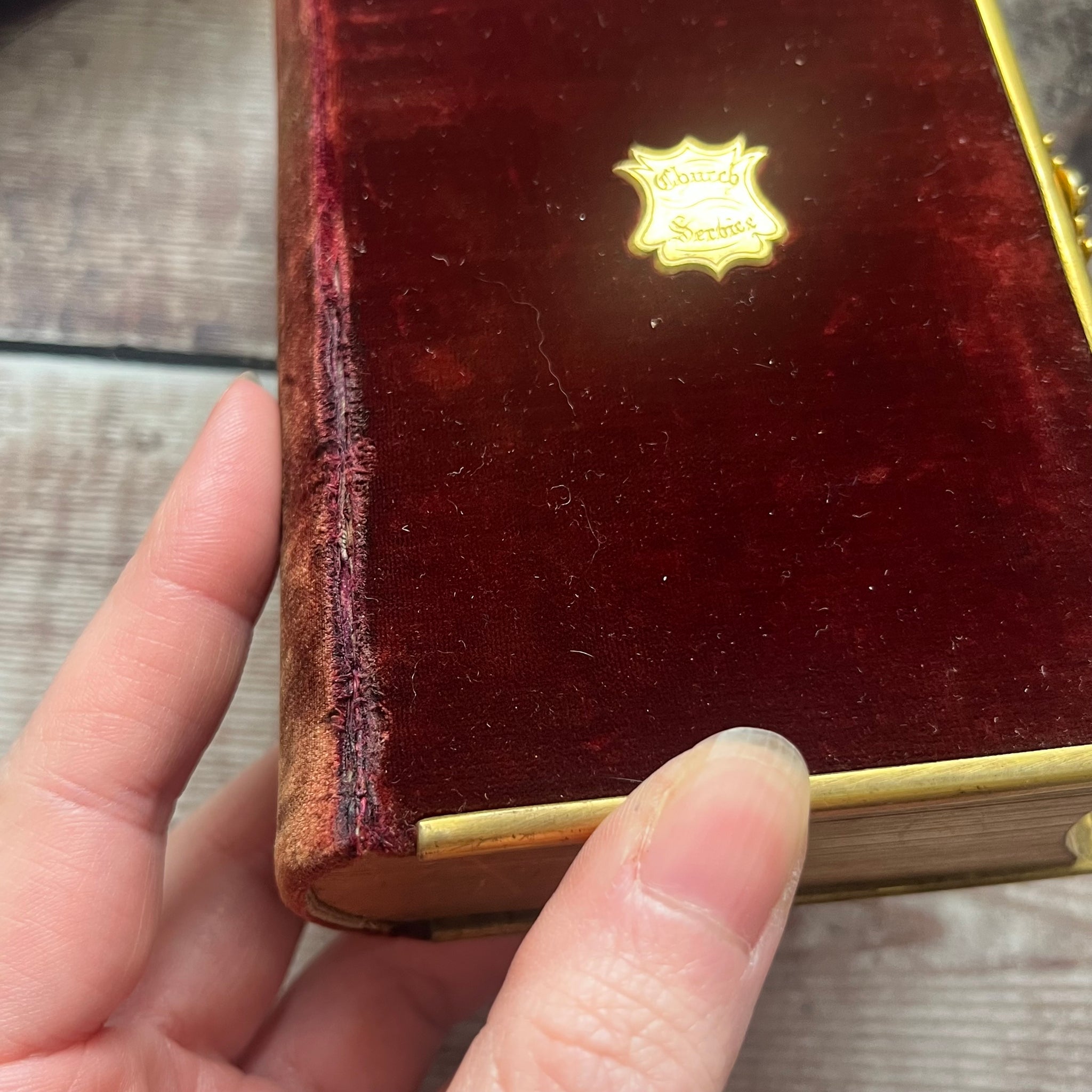 This stunning little velvet bound edition of The Book of Common Prayer was published in 1854. So the book is early Victorian. It has brass edges and a brass clasp. All edges are gilt.