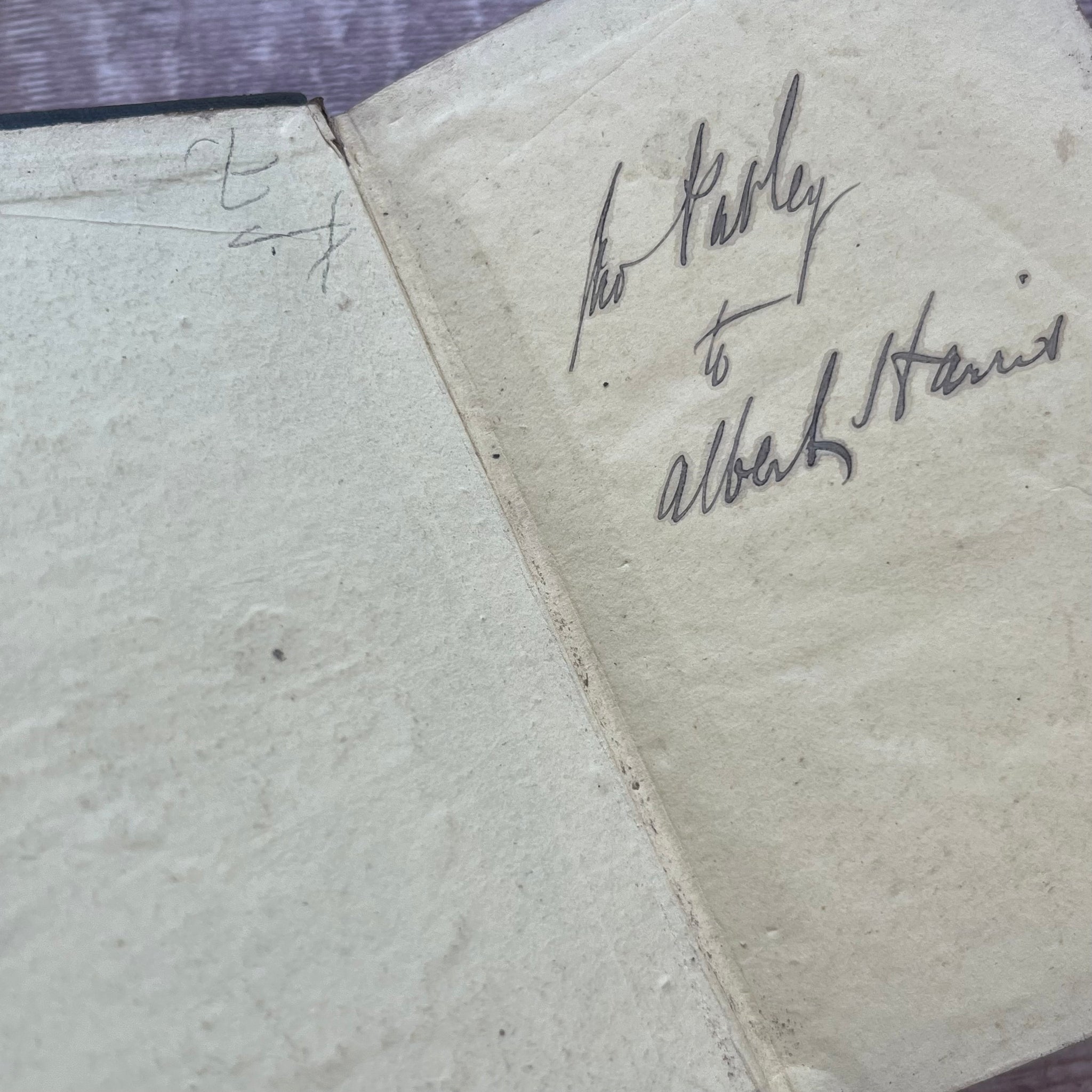 Inside, there is very slight cracking to the front internal hinge and there is a written name on the front free endpaper. The pages show significant age toning throughout, with some sporadic foxing, marking and creasing in places.